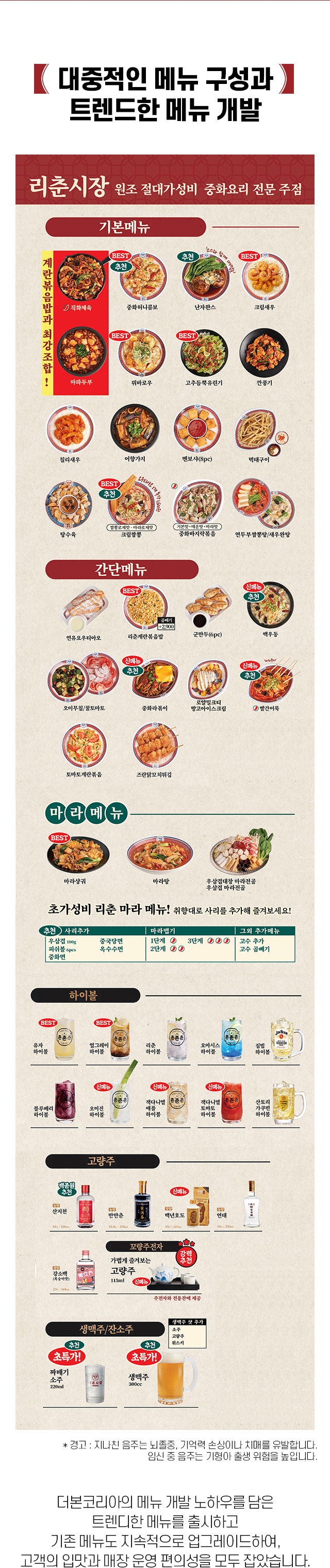 가성비 좋은 고급 중식요리, 리춘시장의 간단 메뉴얼로 간편하게 운영!