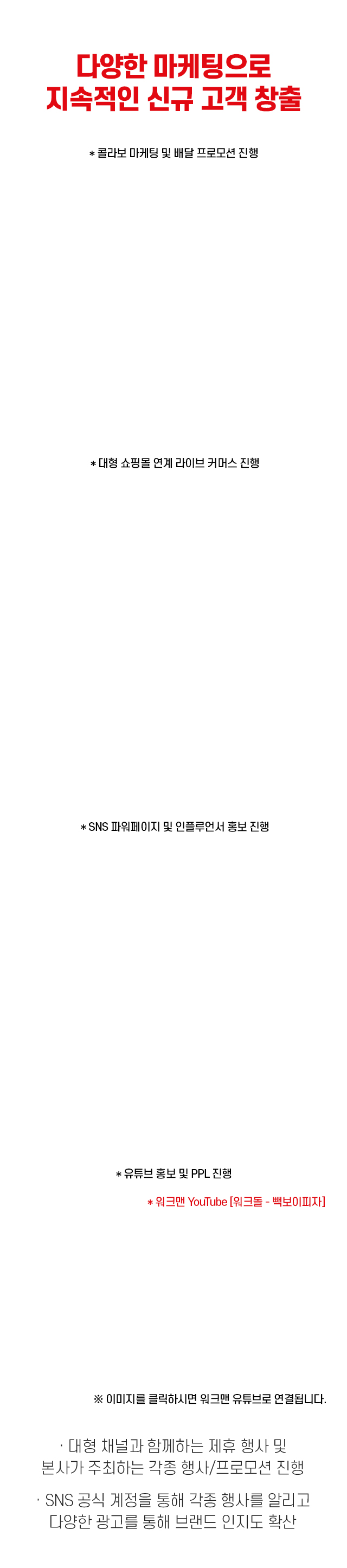 대형 채널과 함께하는 제휴 행사 및 본사가 주최하는 각종 행사/프로모션 진행