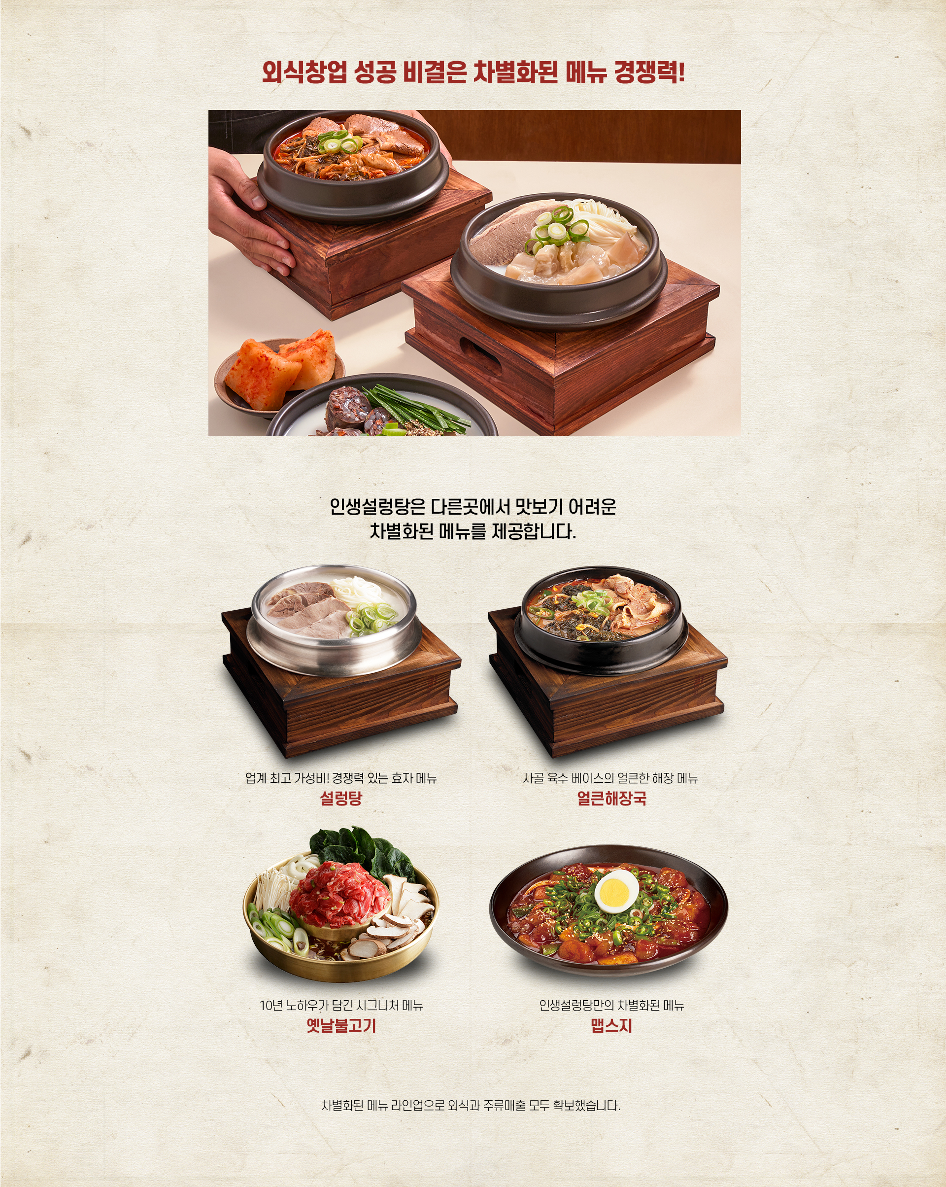 인생설렁탕은 다른곳에서 맛보기 어려운 차별화된 메뉴를 제공합니다.
